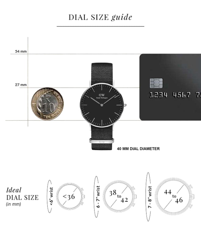 Designed to suit the preference of urban gender, this analog watch from Daniel Wellington is sure to make a style statement. The stainless steel strap exudes a silver hue that accentuates the look of the timepiece. Moreover, it is fitted with a clasp that ensures a secure fit on the wrist. With its distinctive dial and all-black nato strap, the Classic Cornwall is a true eye-catcher that embodies the timeless and elegant characteristics of our flagship Classic collection. With a sleek design and a captivating essence, this is a modern Classic made for every occasion.
