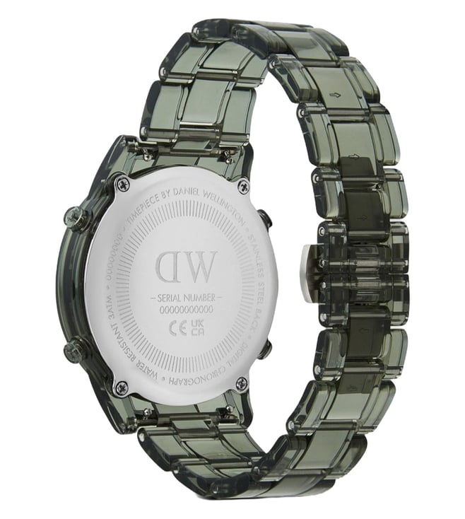 Amaze everyone around you by wearing this Men Digital watch from the collection by Daniel Wellington Encased in a 20 mm case, the Black Round dial is protected by a Mineral Glass It features Plain 2-Hand , and a crown for time adjustment. The Plastic strap comes in a Green hue that further elevates the look of the timekeeper. Besides, it is completed with a Butterfly Clasp