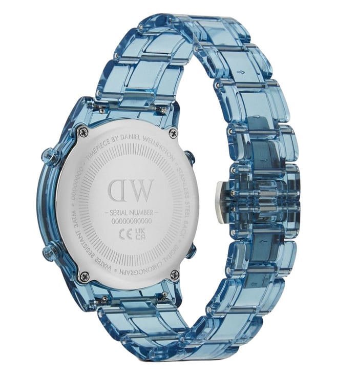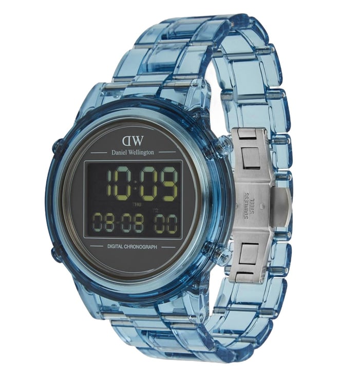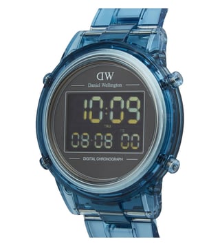 Amaze everyone around you by wearing this Men Digital watch from the collection by Daniel Wellington Encased in a 20 mm case, the Black Round dial is protected by a Mineral Glass It features Plain 2-Hand , and a crown for time adjustment. The Plastic strap comes in a Blue hue that further elevates the look of the timekeeper. Besides, it is completed with a Butterfly Clasp