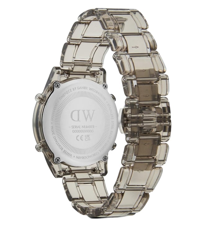 Amaze everyone around you by wearing this Unisex Digital watch from the collection by DANIEL WELLINGTON Encased in a 18 mm case, the Black Round dial is protected by a Mineral Glass It features Plain 2-Hand , and a crown for time adjustment. The Plastic strap comes in a Grey hue that further elevates the look of the timekeeper. Besides, it is completed with a Butterfly Clasp