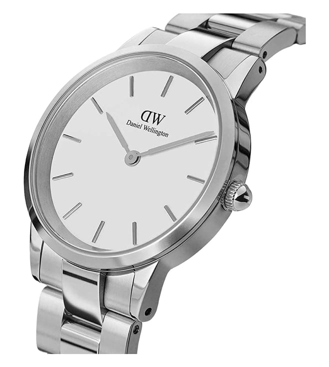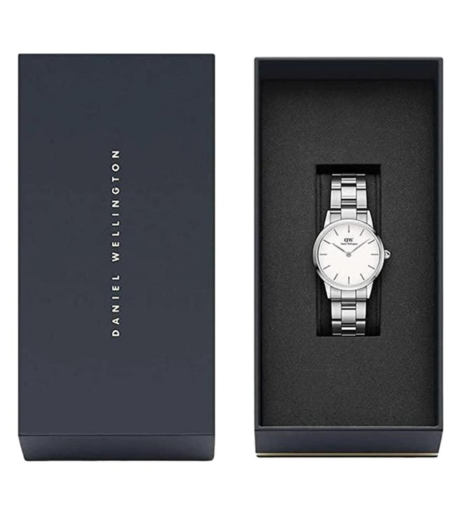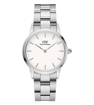 Amaze everyone around you by wearing this Women Analog watch from the collection by Daniel Wellington Encased in a 28 mm case, the White Round dial is protected by a Mineral Glass It features Plain 2-Hand , and a crown for time adjustment. The Stainless Steel strap comes in a Silver Tone hue that further elevates the look of the timekeeper. Besides, it is completed with a Butterfly Clasp