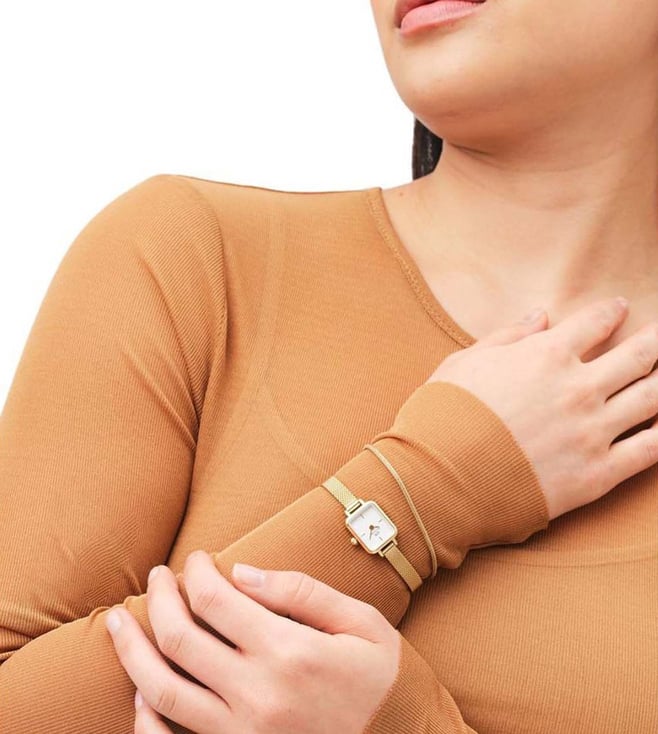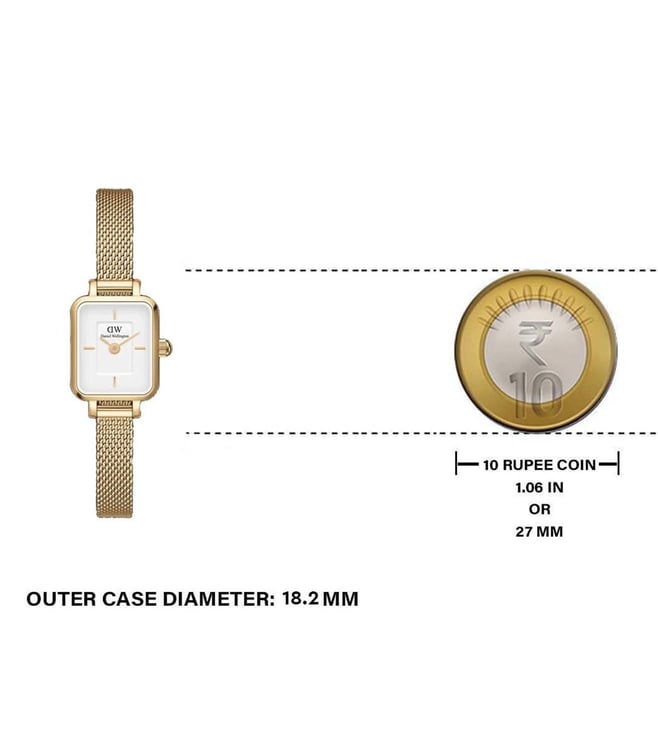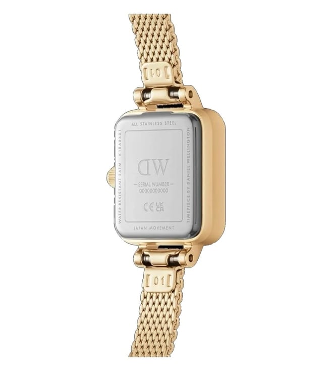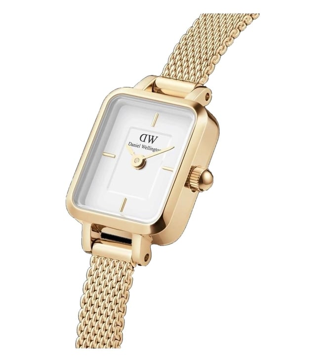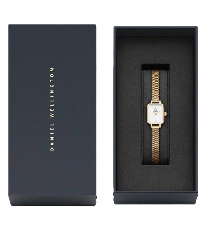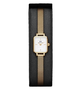 Everyone will appreciate your fine taste in style as you wear this women's analog watch from Daniel Wellington. The white square dial is secured by a mineral glass and is functional on a japanese quartz movement. It exudes plain two hands. The stainless steel strap vaunts a gold hue that enhances the look of the watch. Furthermore, it is completed with a clasp to ensure a secure fit on the wrist.