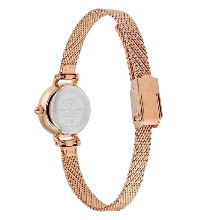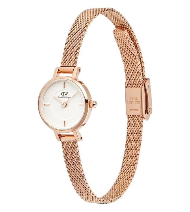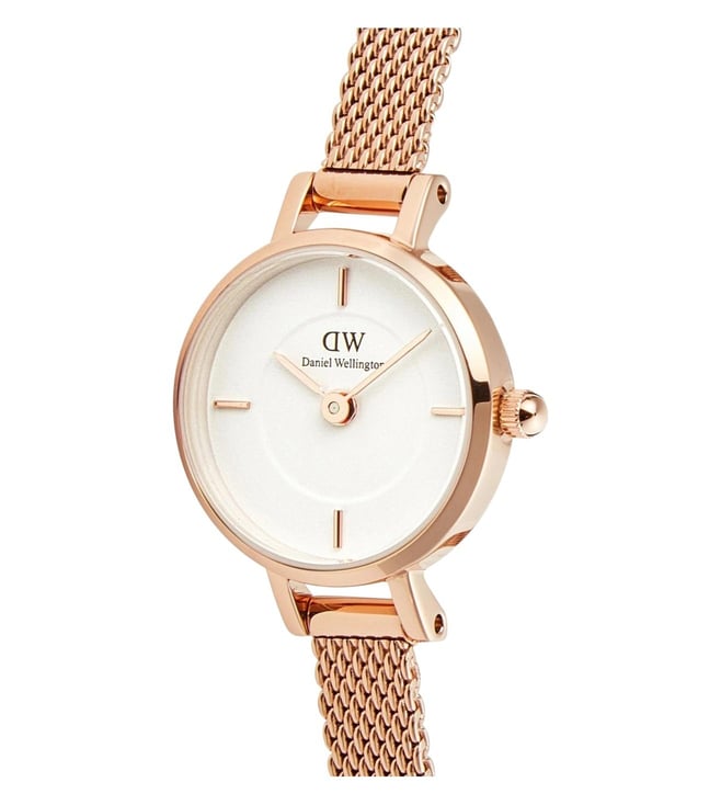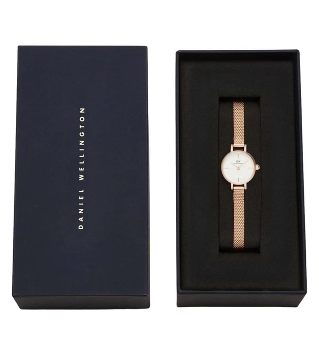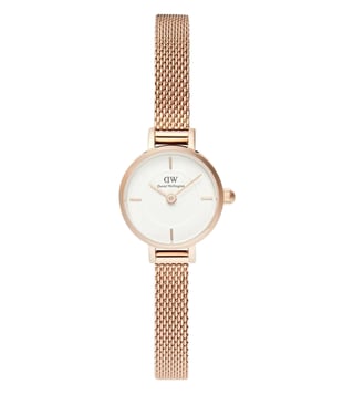 Amaze everyone around you by wearing this Women Analog watch from the collection by Daniel Wellington Encased in a 19 mm case, the White Round dial is protected by a Mineral Glass It features Plain 2-Hand , and a crown for time adjustment. The Stainless Steel strap comes in a Rose Gold Tone hue that further elevates the look of the timekeeper. Besides, it is completed with a Push & Slide Clasp