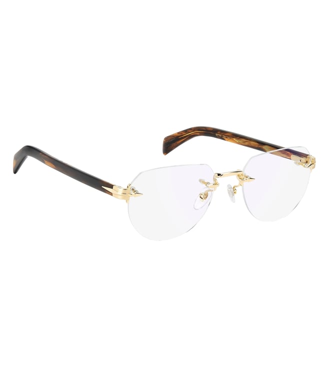 Compel the onlookers to cast a glance of appreciation with this Eye Frames from David Beckham. Designed using superior quality Metal, this frame will certainly last longer. Exuding a Gold hue, this frame comes with a Rimless design that ensures a comfortable fit on your eyes.