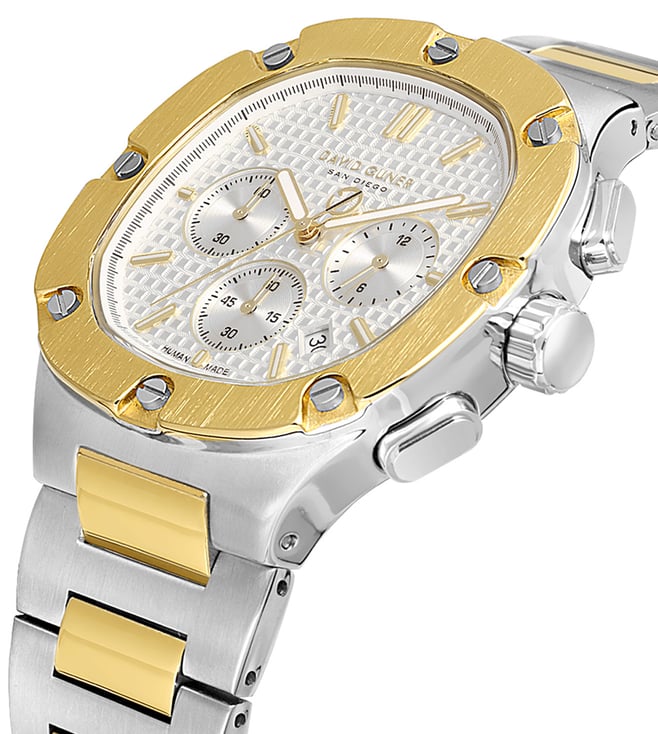 Introducing the DAVID GUNER DG-8860GA Quartz Chronograph Mens Watch, a sleek and sophisticated timepiece designed for the modern man. With a 42mm case size and a stunning chronograph feature, this watch combines style and functionality effortlessly. The DG-8860GA-D1 model boasts a durable quartz movement, ensuring precise timekeeping for any occasion. Elevate your look with this timeless accessory that exudes confidence and sophistication. Make a statement with the DAVID GUNER DG-8860GA watch, the perfect blend of style and substance.