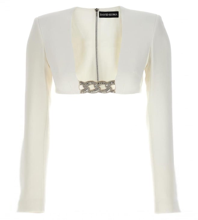 White Top 3D Crystsal Chain And Square Neck