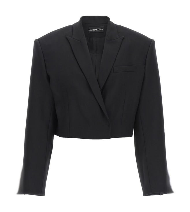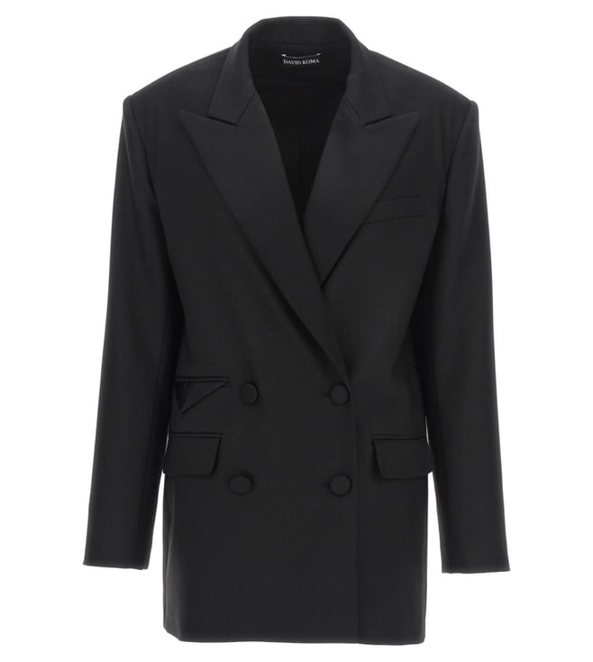 Black Double-Breasted Stretch Wool Relaxed Fit Blazer
