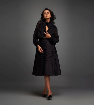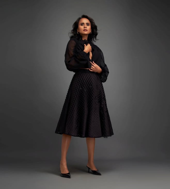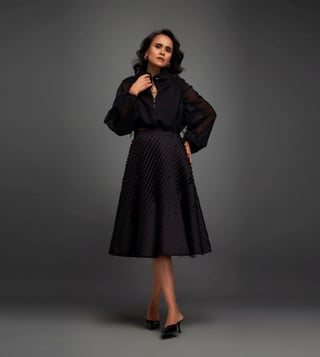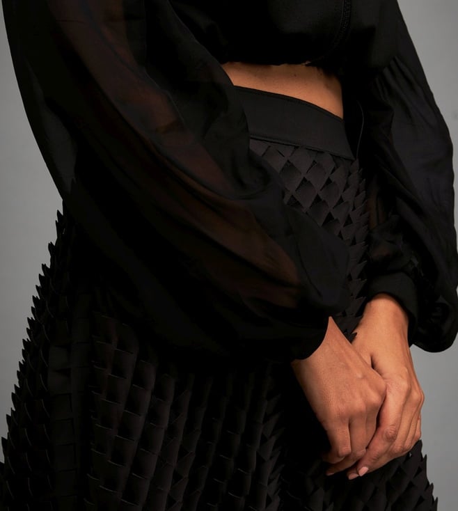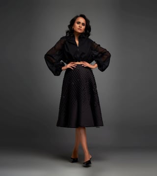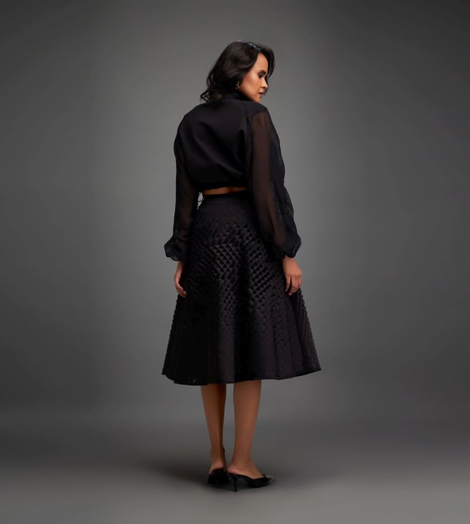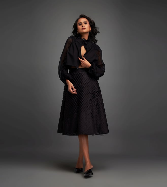 Deepika Arora Black Cropped Jacket With Line Skirt