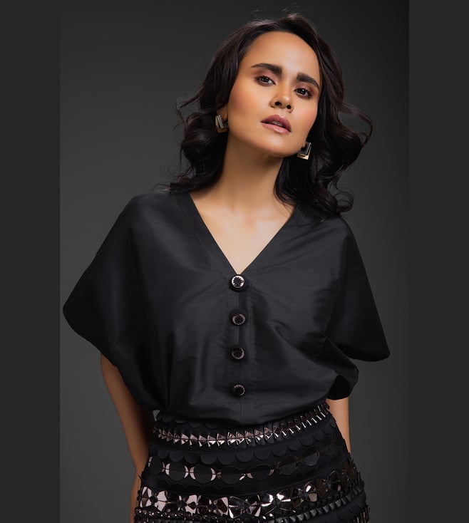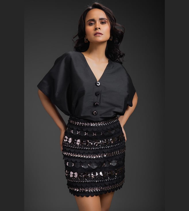 Elevate your style with the Designed for women, Deepika Arora Black Silk Regular Fit Embroidered Taffeta Top With Metallic Skirt this vibrant piece combines comfort and elegance. Disclaimer: All other items in the image are only for display purposes and will not be a part of the delivery content. Product colour may slightly vary due to photographic lighting sources. Country of Origin - India.