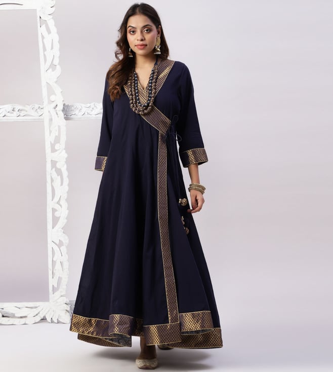 Powder Blue Ganguar Pure Cotton Anarkali Kurta with Pant and Dupatta