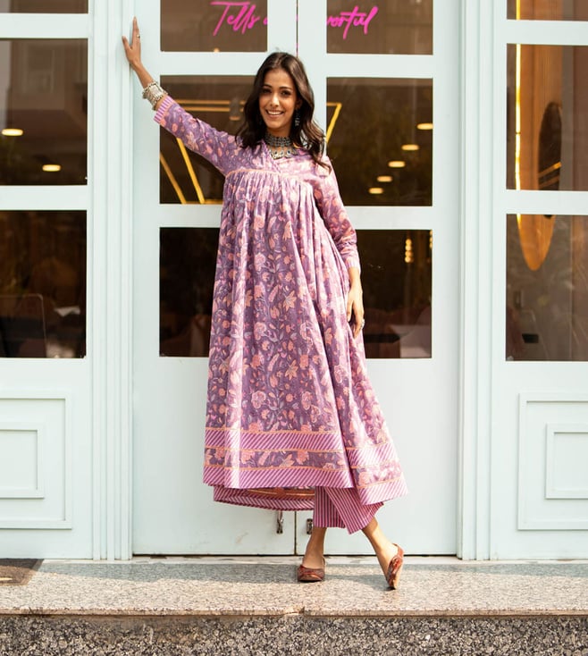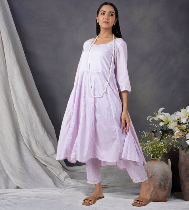 Lilac Hand Embroidered Cotton Anarkali Kurta