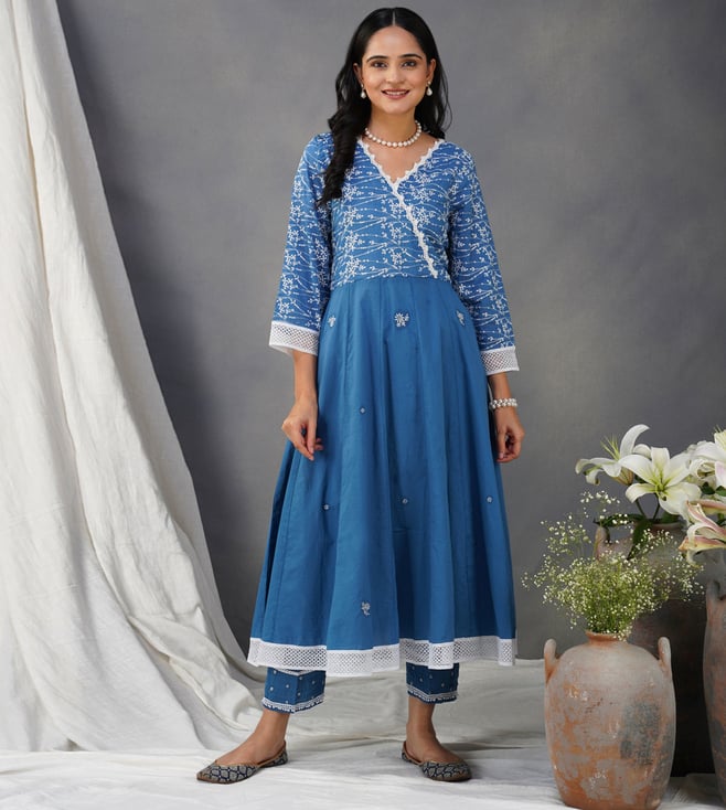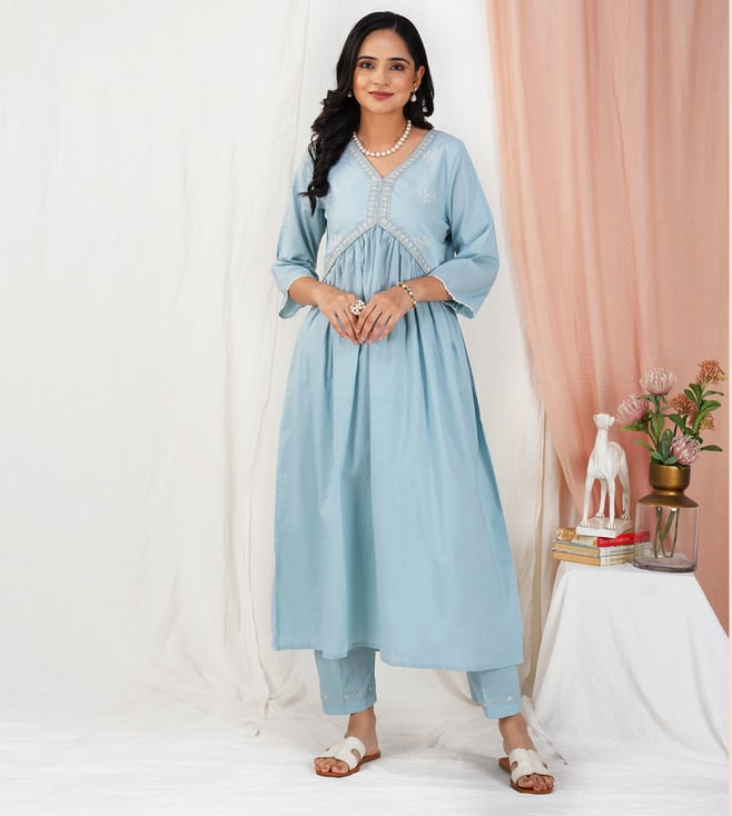 Mumtaz Chikankari Anarkali Kurta/ Dress- Ice Blue