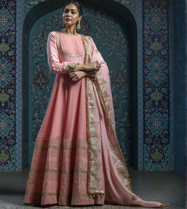 Salmon Pink Shehzaadi Irai Anarkali With Dupatta Set