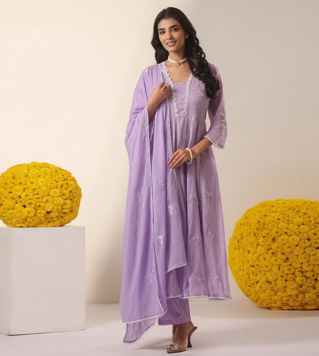 Powder Blue Ganguar Pure Cotton Anarkali Kurta with Pant and Dupatta