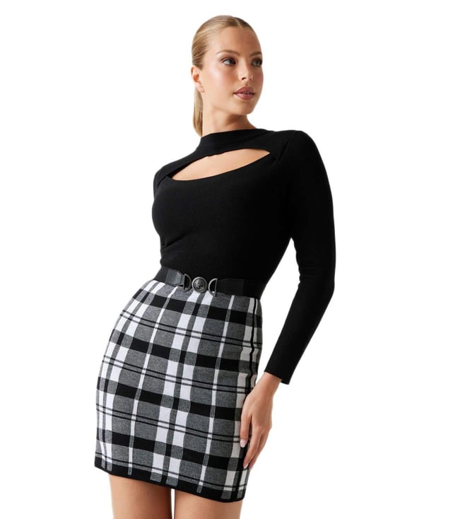 Jet Black Coraline Stella Yarn Checked Regular Fit Bodycon Dress