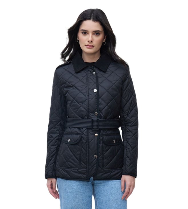 Black Woven Design Regular Fit Jacket