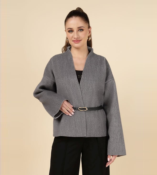 Slate Green Square Neck Sleeveless Cape With Bustier And Garara