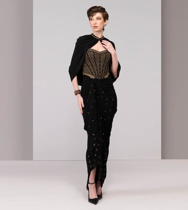 Black Kinnauri Cape with Inner and Pant Co-Ord Set