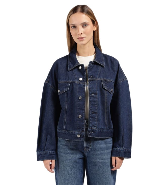 Navy Blue Logo-Patch Cotton Denim Jacket