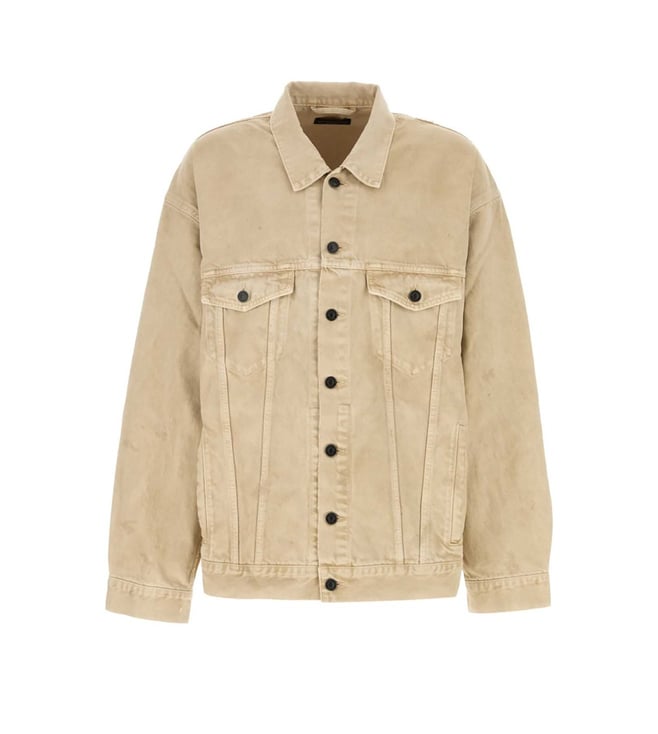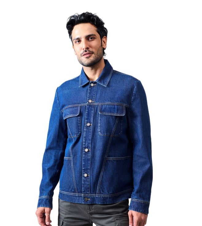 Men's Blue Cotton Printed Regular Fit Fur Collar Full Sleeve Denim Jacket