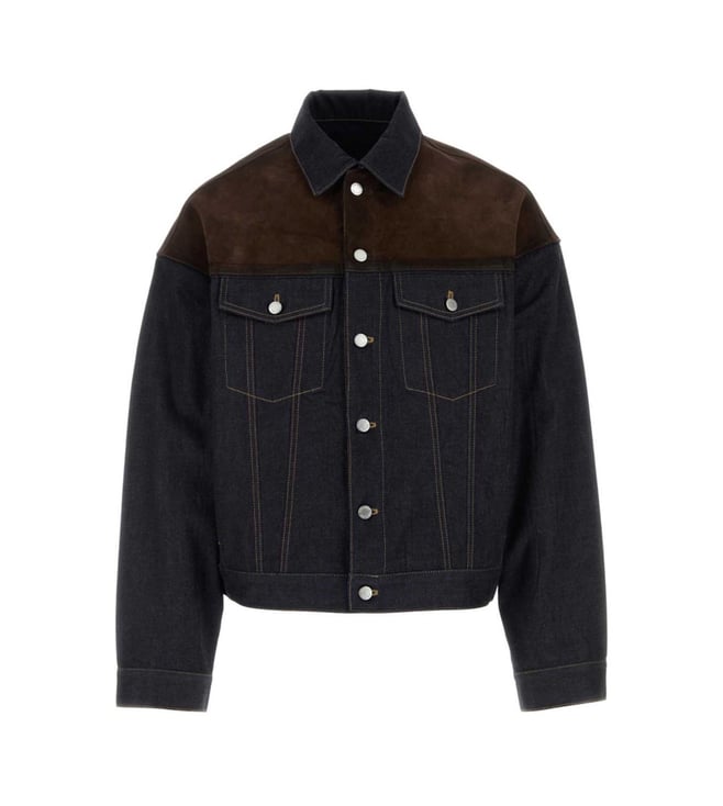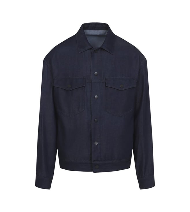 Navy Blue Logo-Patch Cotton Denim Jacket