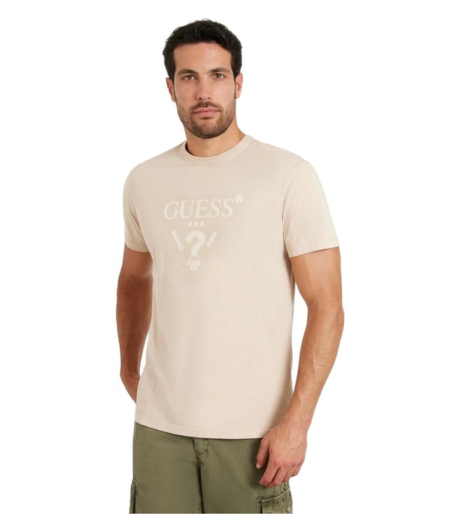 Beige Blanco Pure Cotton Printed Round Neck T-Shirt