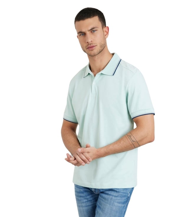YD White and Regal Blue Regular Fit Striped T-Shirt