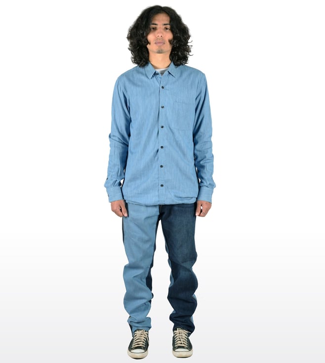 Cotton Weston Blue Tie & Dye Spread Collar Regular Fit Denim Shirt