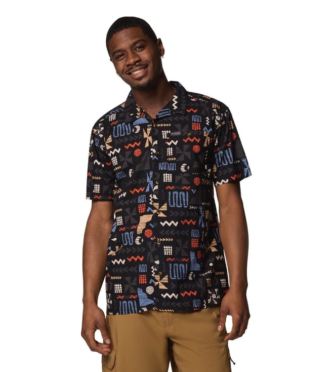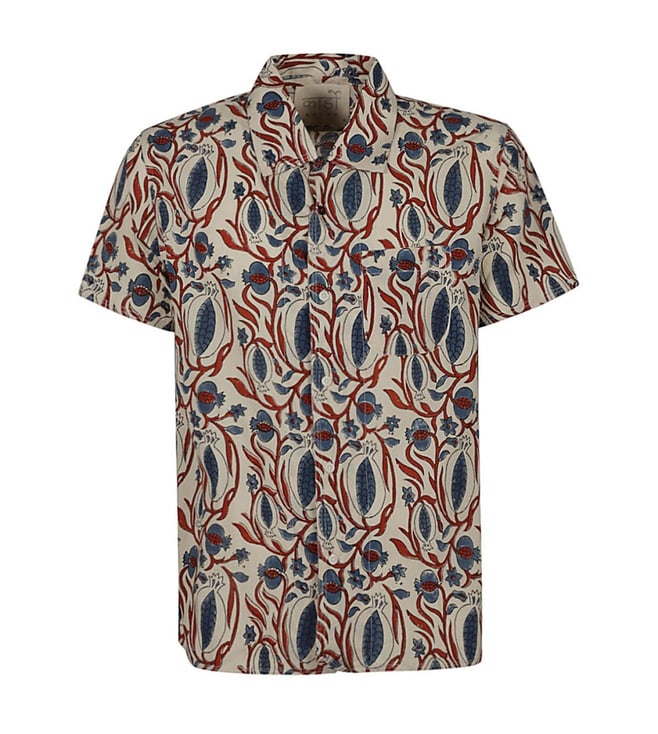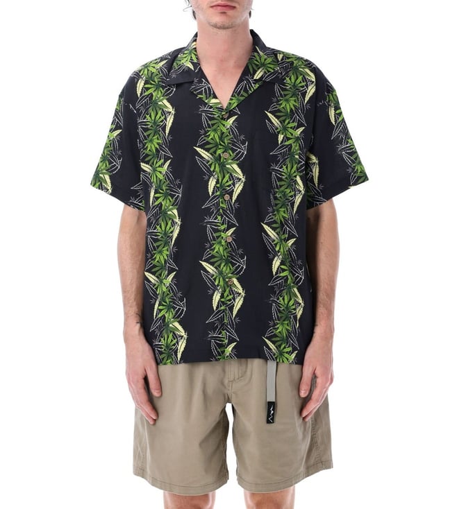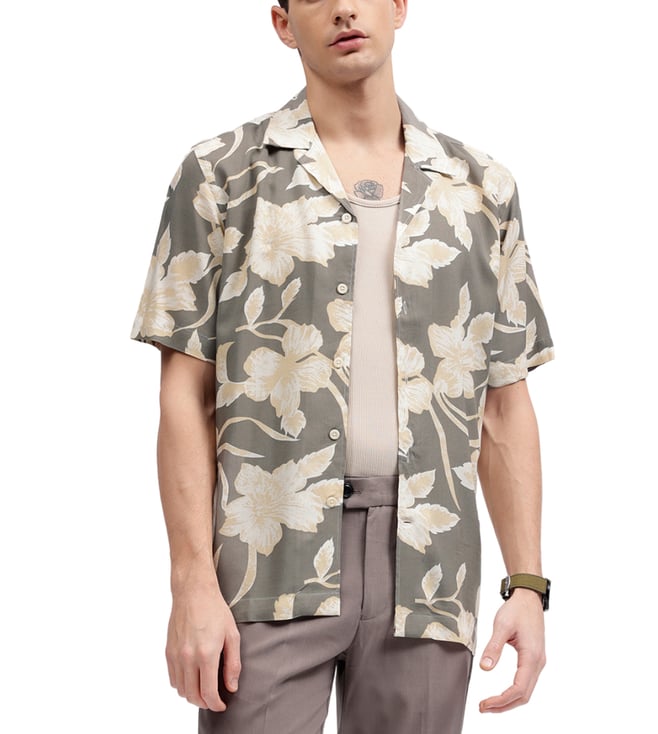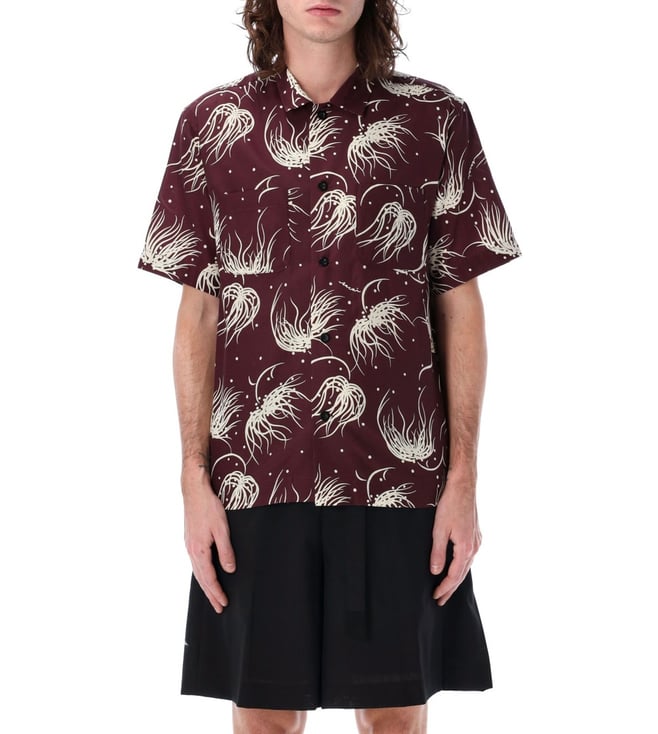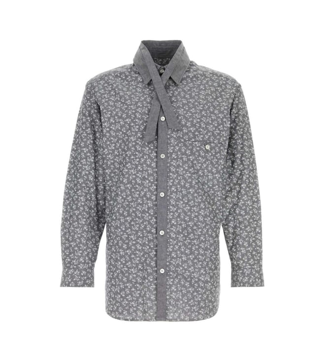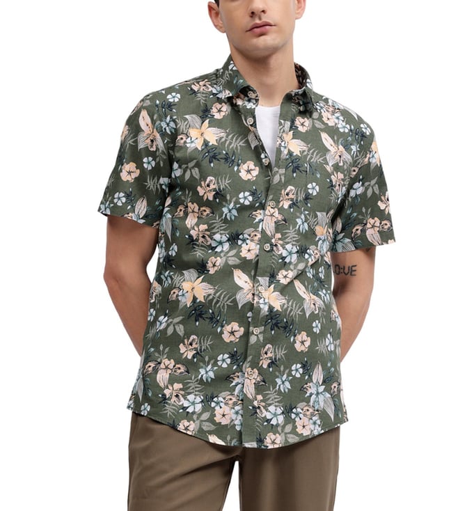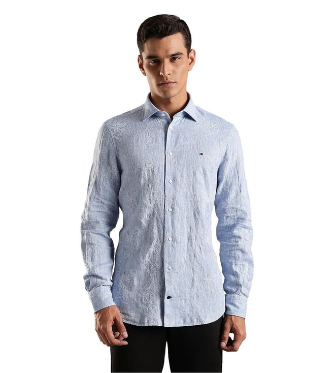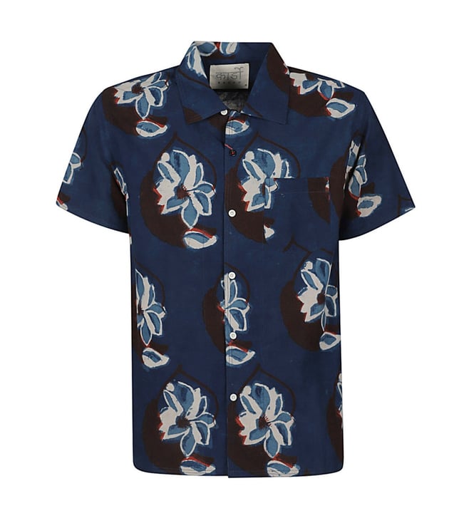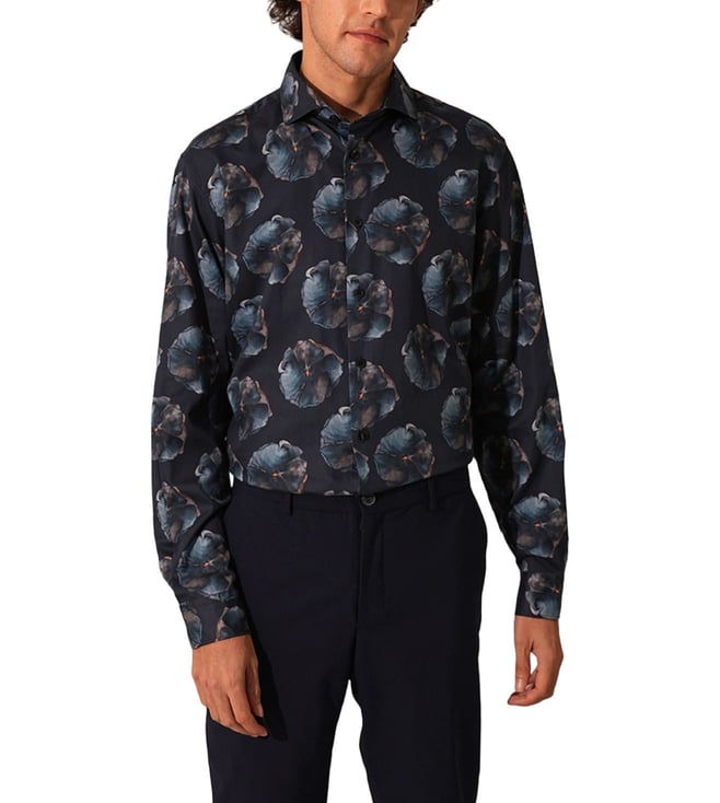 Dark Blue Fashion Floral Print Slim Fit Shirt