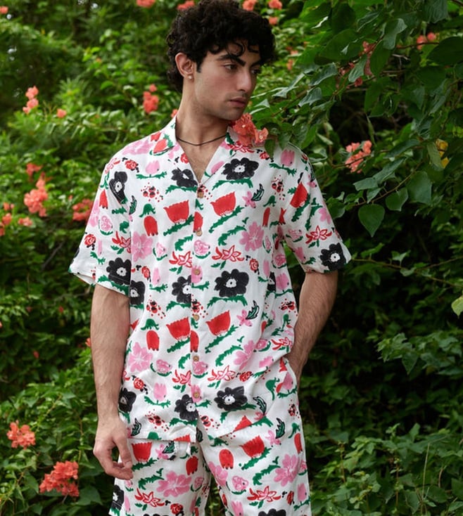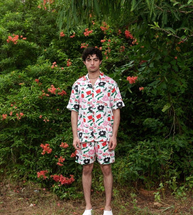 White & Multi-coloured Sundaze Jardin Spray Resort Co-ord Set Shirt & Shorts