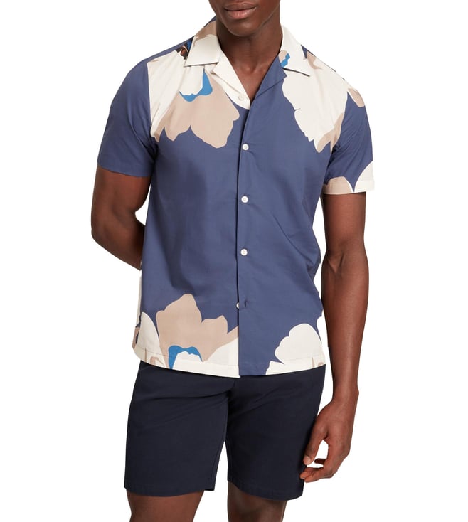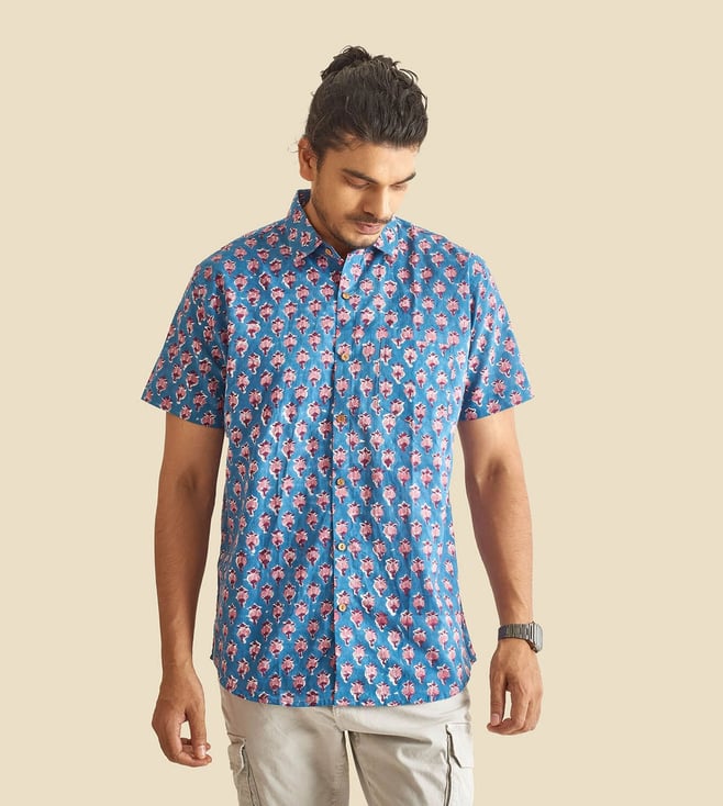 Blue Floral Print Slim Fit Shirt