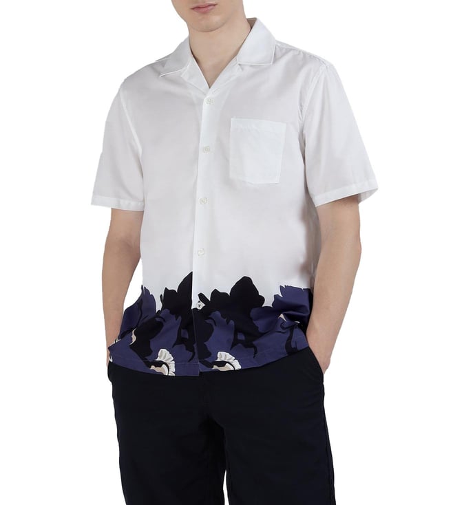 White Floral Regular Fit Casual Shirt