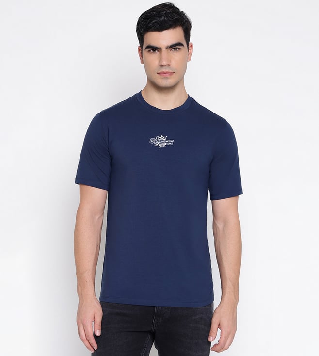Glean Mid Organic Stretch Silk Blue Solid Round Neck Slim Fit T-Shirt