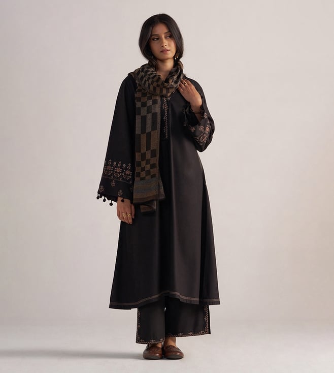 Pine Grove Embroidered Long Sleeves Pashmina Kurta Set With Dupatta