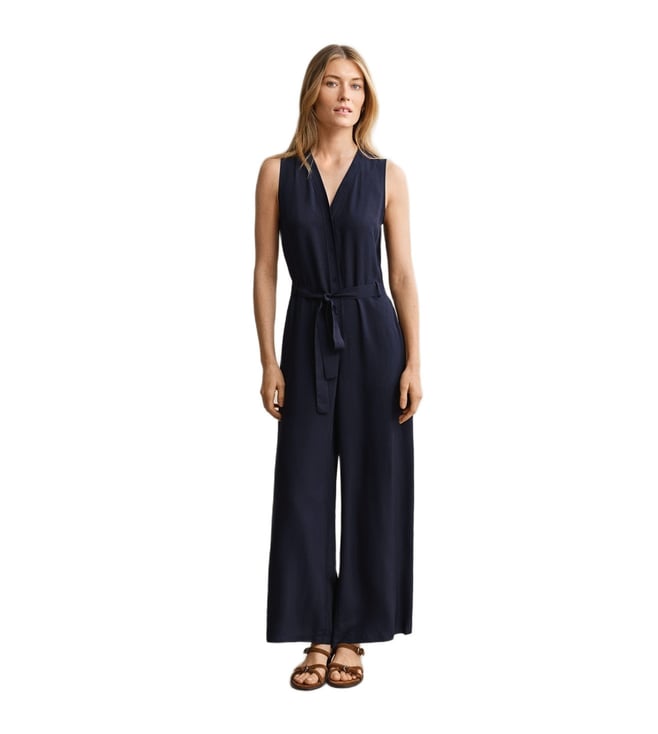 Beige Pure Cotton Stripes Sleeveless Jumpsuit