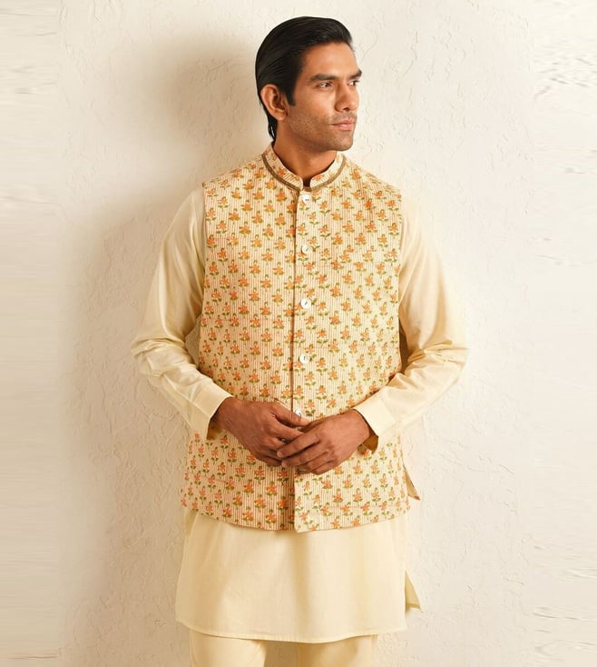 Yellow Regular Fit Kurta Set with Jacket