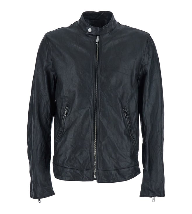 Dolce & Gabbana Black Stand Collar Leather Jacket