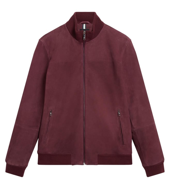 Black Leather Bomber With Patch Regular Fit Jacket