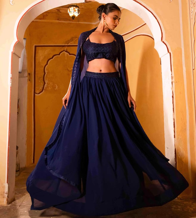 Blue Poly Georgette Regular Fit Lehenga Set