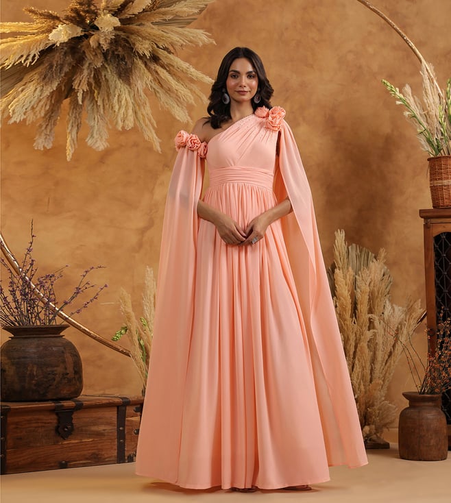 Onion pink Festive Pret Drapped One Shoulder Regular Fit Midi Gown