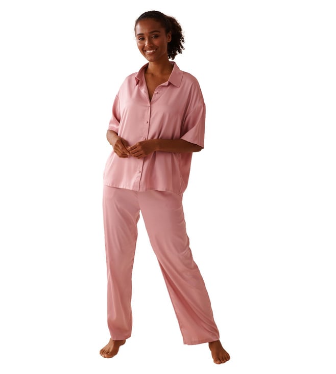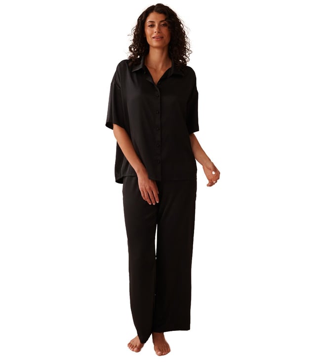 Black Embroidery Nightwear Shirt And Pajama Set