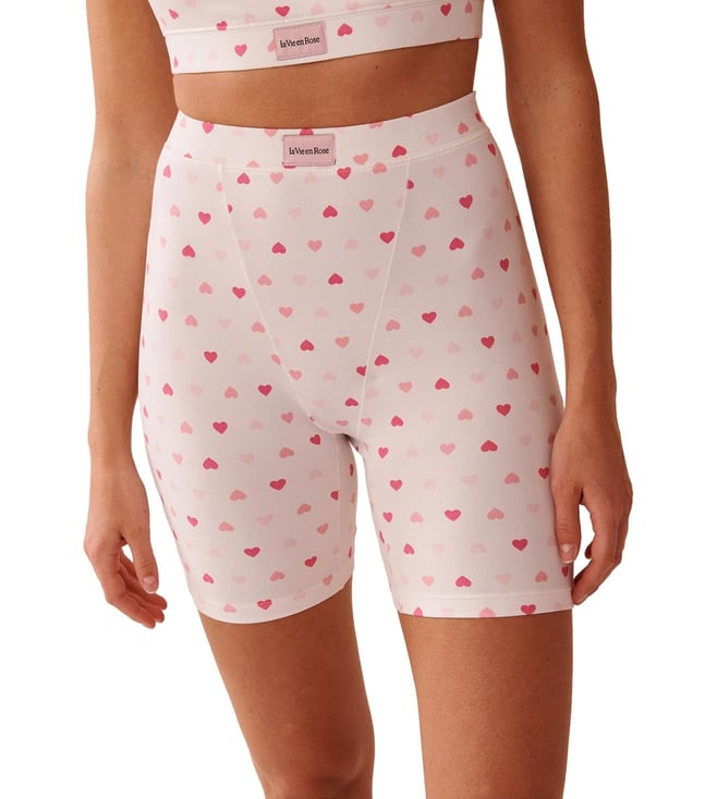 White Heart Printed Super Soft Biker Style Pajama Shorts