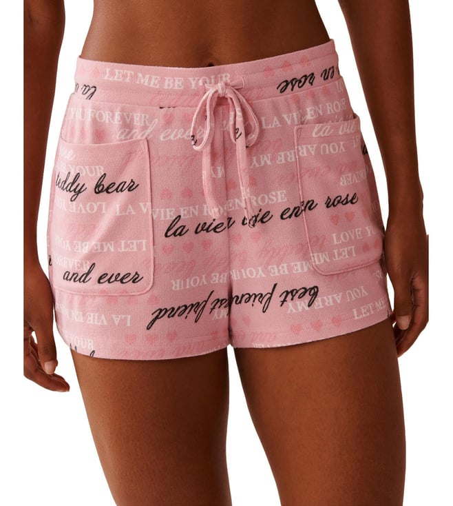 Pink Heart and Letter Printed Pajama Shorts