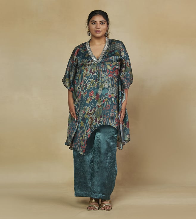 Sea Green Boho Dreams Top and Pant With Printed Jacket