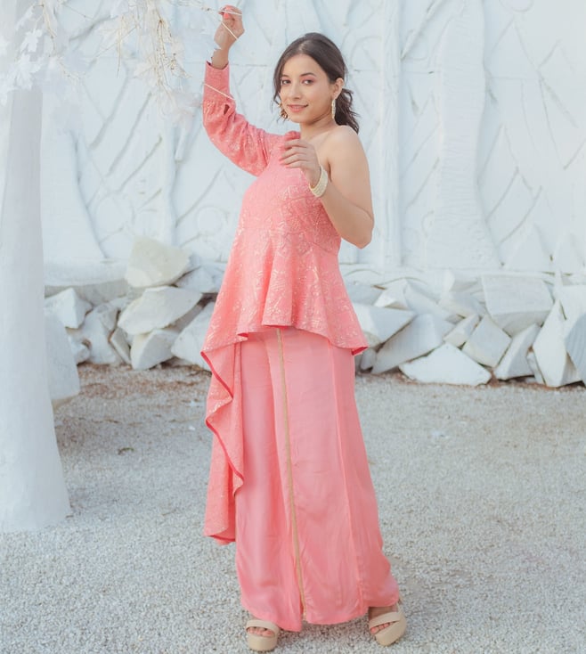 Zeenat Chikankari Top & Palazzo Pants- Peachy Melon