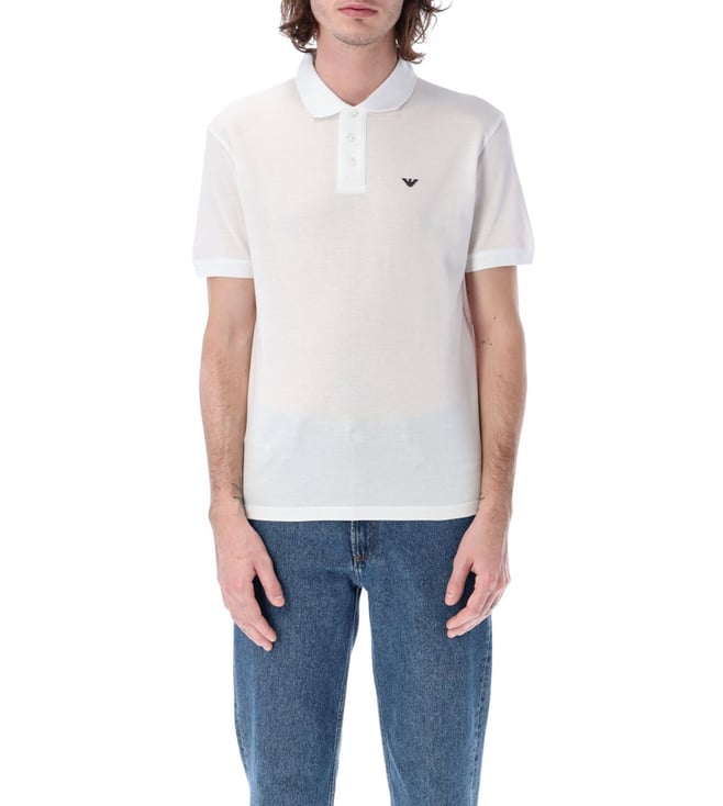 Pure White Regular Fit Logo Printed Polo T-Shirt