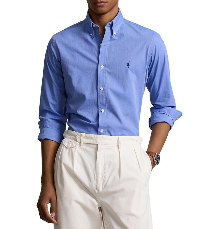 Blue Striped Custom Fit Oxford Shirt