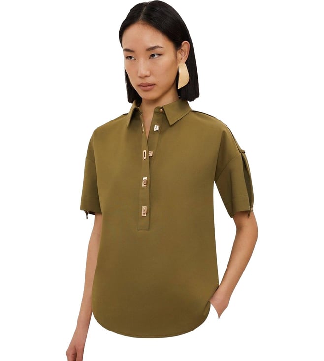 Olive Green Hardwear Details Printed Relaxed Fit Shirt