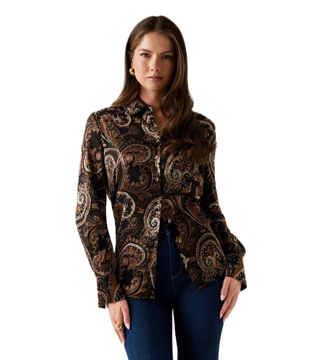 Umber Paisley Printed Comfort Fit Burnout Shirt