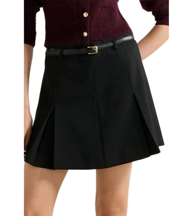 Beige Printed Regular Fit A-Line Pleated Skirt